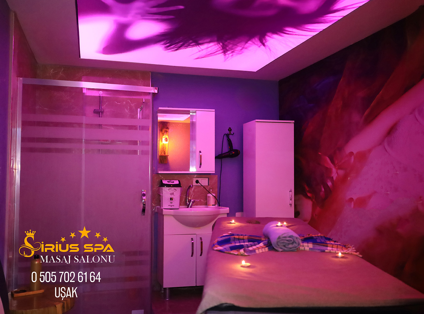 Uşak Sirius SPA & Masaj Salonu olarak 5 yıldır Uşak halkına Spa & Masaj hizmeti sunmaktadır. Alanında uzman masözler ile sizlere en iyi şekilde ağırlamaktayız. Bir çok sertifika ve eğitimler sayesinde yılların tecrübesi ile sizlere en uygun fiyatlara masaj salonumuza bekliyoruz. Kampanyalarımızdan haberdar olmak için web sitemizi ziyaret etmenizi tavsiye ederiz. Size özel masaj çeşidi için rezervasyon yaptırıp fiyat alabilirsiniz.